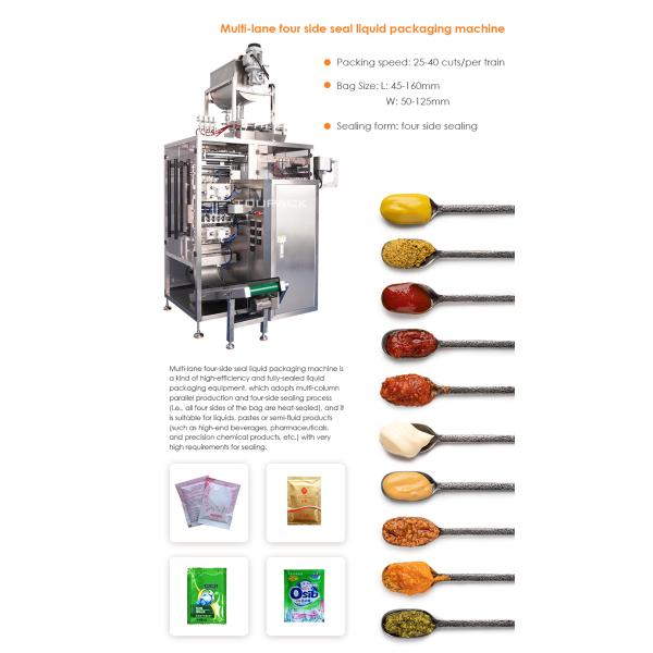 vertical multilane toothpaste shower gel shampoo washing 4 side seal sachet packing filling machine